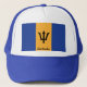 La bandera nacional de Barbados fue adoptada oficialmente el 30 de noviembre de 1966, el primer Día de la Independencia de la isla. Consiste en un triband de dos bandas de azul de ultramar separadas por una banda media de oro. Una trident-cabeza negra (comúnmente llamada el "tridente roto") se centra dentro de la banda de oro. La bandera fue diseñada por el profesor de arte local Grantley Prescod, y elegida de alrededor 1000 diseños después de una competencia a nivel insular. Las dos bandas azules se dicen para colocarse para el océano, mientras que el oro está para la arena en la isla. El tridente se toma de la vieja insignia colonial, que mostró Britannia que sostenía un tridente, la parte más inferior quebrada simboliza una rotura simbólica con sus lazos históricos y constitucionales como colonia anterior. [1] Los tres puntos del tridente representan los tres principios de democracia - gobierno, para, y por de la gente.
