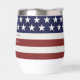 Celebren los Estados Unidos con este vino patriótico / vaso de café. El diseño presenta un patrón inspirado en la bandera estadounidense de rayas rojas y blancas y estrellas blancas. Personalice con 2 líneas de texto personalizado. Perfecto para el 4 de julio, Día del fiesta, Veteranos o la celebración diaria de los EEUU.