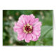 Fotografía de cerca de una zinnia rosa, con una flor pétalo doble rosa con estrellas amarillas.