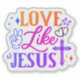 Una vibrante colección de pegatinas de versículos de la Biblia enfatiza el mensaje de amor, con diseños coloridos que incluyen símbolos como corazones, signos de paz y cruces. Estos pegatinas son perfectos para inspirar positividad y fe en la vida cotidiana.
