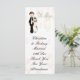 Este dulce marcador de agradecimiento de boda tiene un fondo blanco con campanas de boda suaves y presenta a una novia y un novio. El diseño fue creado por Sketchart26 utilizando arte de Delightful Doodles.