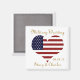 Un bello tema patriótico o boda militar personalizado salva la fecha, o imán de favores matrimoniales. ¡Este corazón cuadrado con bandera estadounidense es un maravilloso recordatorio para tu boda de temática patriótica! En colores patrióticos de rojo, blanco y azul sobre un fondo blanco con un elegante guión dorado. El texto está en forma de plantilla y listo para que añada los nombres de la novia y del novio y la fecha del boda! Nota: Si desea cambiar el tamaño del tipo de letra, el estilo o los colores, simplemente haga clic en 'personalizar' y estas opciones estarán disponibles para usted! Este imán es maravilloso ya que es un 'guardar la fecha' o un favor de boda. Visita nuestra tienda para encontrar artículos patrióticos como tarjetas de recepción, tarjetas de número de mesa, tarjetas de respuesta, sellos postales, ornamentos militares y favores matrimoniales, y mucho más.