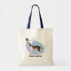 ¡La bolsa de asas sin pelo con cresta china linda! La raza del perro se coloca en toda su gloria - penachos del pelo en los pies, la cola, los oídos, y la cabeza, mientras que el resto es piel punteada rosa. La animación original del perro es mutilación de la casa de fieras del © de Copyright. Fondo azul. Hecho especialmente para los dueños con cresta chinos.