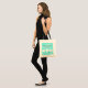 La bolsa de asas con monograma del boda del destino de la playa. La aguamarina/las azules turquesas elegantes diseña con las palmeras y la tipografía elegante de la caligrafía de la escritura para el nombre de la novia y del novio más la fecha de la boda. Letra inicial del monograma elegante del logotipo de Personalizable. Color de fondo adaptable para hacer juego tema. Haga uno para la novia, las damas de honor, la criada del honor, la madre de la novia etc. También agradable como favor con clase para las huéspedes. La diversión para el boda tropical del verano, la ducha nupcial y el beachelorette van de fiesta. IE personalizado de la ubicación carribean, los E.E.U.U. o Islas Vírgenes, Bahamas, Islas Caimán, St Lucia, Aruba, Barbados, México, Jamaica británicos etc.