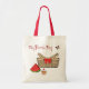 Bolso de la lona de la comida campestre de la diversión, con las imágenes del dibujo animado de una cesta de la comida campestre con un arco rojo, una mariposa linda, la rebanada de la sandía, y una magdalena deliciosa. El texto rojo lee, mi bolso de la comida campestre es completamente adaptable leer cualquier cosa que usted quiere. Llene de las chucherías para una idea maravillosa del regalo.