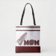 Por todo la bolsa de asas de la impresión hecha en un marrón y un blanco con la lectura gráfica del texto anime a la mamá con la bola y el megáfono del pie. Personalizar para añadir cualquier texto que usted quiera. Gran regalo para la madre de la mamá de cualquier animadora o del futbolista.