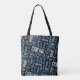 La bolsa de asas que ofrece un modelo de términos que se encrespan en sombras de azul y del gris en fondo negro. Perfeccione para los bigudíes y las fans que se encrespan.