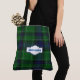 La bolsa de asas colorida de la tela escocesa hecha en el modelo azul, verde, blanco, y negro tradicional del tartán de Abercrombie del clan. Una placa blanca decorativa del texto, en el frente del bolso, tiene texto azul de encargo listo para personalizar. Gran tote de uso múltiple.