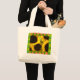 La bolsa de asas única que ofrece los girasoles amarillos hermosos rodeados por una frontera artística colorida.