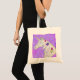 Unicornio bonito con las flores en su melena en un fondo púrpura, en una bolsa de asas.
