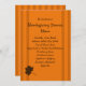 Personalizable. Modelo anaranjado de la raya del dos-tono grueso con la hoja de arce anaranjada para una sensación retra. Ideal para cuaesquiera fiestas de cena de la caída o para la cena de la acción de gracias. Este menú es todo el vegetariano (recetas aquí: http://www.theveggietable.com/recipes/thanksgiving.html), pero lo cambia y añade sus propios platos (o quite el texto y añádalo en casa, a mano). Disponible en rayas marrones. Invitaciones a juego de la cena de la acción de gracias disponibles. El fieltro, pero usted puede elegir su propio tipo de papel.