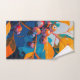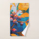 Hojas de otoño y toalla de mano de la baya de rowan. Resumen de la naturaleza moderna del otoño de aceite pintado de arte en colores naranjas amarillos azules.