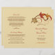 Diseño del programa de ceremonia de boda con temática de otoño con fondo amarillo dorado que incluye elegantes rollos y hojas en colores otoñales Personaliza el texto personalizado para tu fiesta nupcial, información de la ceremonia, y mensaje de agradecimiento. Nota: estos programas de peso de texto llegan planos y requieren plegado para ensamblar.