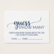 Esta caligrafía marina adivina cuántos besos son cartas de juego divertidas para una elegante ducha de novia. Llena un frasco con los Besos de Hersey y haz que tus invitados adivinen cuántos caramelos hay en el frasco. ¡La respuesta más cercana gana un premio! El diseño blanco y azul presenta una tipografía rústica de moda y un bonito corazón romántico.