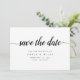Sencilla y elegante guardar las tarjetas de fecha notifica a sus invitados de su próximo boda en un estilo atemporal. Las tarjetas blancas Crisp tienen la función "guardar la fecha" en la escritura caligráfica, con sus nombres, fecha de boda y ubicación debajo del tipo serif negro clásico. Añada información adicional, como el sitio web de su boda, al reverso con letras blancas en un fondo negro contrastante.