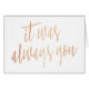 Estilo de caligrafía simple y bonito: "Siempre fuiste tú", tarjeta del día de la boda, de la novia al novio o del novio a la novia. **************************************************************************************************************************************************************************************************************************************************************** *********** Nota: el cobre no es un Relieve metalizado real ***********************************************************************************************************************************************************************************************************************************************************************************************************************************************************************************************************************************************************************************************************