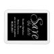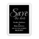 Caligrafía Guardar el imán de fecha en blanco y negro con un sofisticado diseño tipográfico. Esta elegante y moda ahorra la fecha imán es fácil de personalizar con los detalles de su boda. Para obtener más opciones de personalización, haga clic en el botón Personalizar.