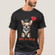 La camiseta muestra un adorable ilustracion de un bulldog francés en primer plano, representado de una manera tierna y caricaturista. El perro lleva una gorra de béisbol con un hueso cruzado