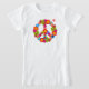 ¡Peave, amor y armonía! ¡Este signo de la paz magnífico se adorna con las flores bonitas apenas para los chicas! Una mariposa bonita asoma arriba. Características del este diseño en una gran gama de la ropa del chica.