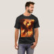 Esta camiseta de ensueño cuenta con un suave fondo de agua en tonos azules y rosa tranquilizantes, que evoca un cielo crepúsculo. Las fotos superpuestas son extravagantes, representadas en un vibrante estilo de impresión de bloqueo. Los fénix, con sus colas flotantes y sus alas estiradas, se representan en diferentes tamaños y posiciones, creando un sentido de movimiento y libertad. El efecto general es etéreo y cautivador, mezclando la fluidez de la acuarela con la naturaleza gráfica audaz de la impresión en bloques para un diseño único y artístico. La paleta de colores está deliberadamente apagada para realzar el ambiente de ensueño.