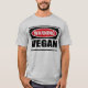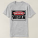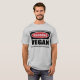 La camiseta de los hombres amonestadores del VEGANO que usted puede modificar para requisitos particulares en www.WarningSignShirts.com y que ofrece una señal y a un VEGANO rojos y negros de peligro en letras negras intrépidas de advertir el mundo. Usted puede también modificar la camiseta de sus propios de peligro hombres para requisitos particulares de la señal con el texto que usted quiere.