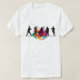 Una camiseta de los deportes que ofrece cinco siluetas que juegan béisbol, golf, fútbol, baloncesto y el funcionamiento. Un chapoteo de colores brillantes crea el fondo.