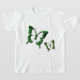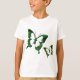 Dos mariposas verdes que revolotean alrededor de la camiseta.