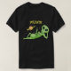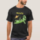 Chillin verde del extranjero apenas que da el signo de la paz con un planeta y las estrellas sobre él en una camisa negra.