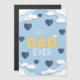 Feliz Día del Padre diseño lindo, mejor papá jamás entre nubes y corazones azules en el cielo, personalizado de corte de papel 3d