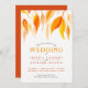 El otoño suelto deja invitaciones de bodas a pintar acuarelas. Naranja de arte de acuarela, amarillo, rojo diseño ideal para una boda en otoño. © Arte y diseño de acuarela original de Sarah Trett para www.mylittleedenweddings.com en zazzle.