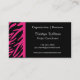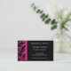 La cebra moderna y elegante raya rayas rosadas de la cebra de las características de las tarjetas de visita en el frente y la parte posterior y una frontera rosada del acento en el frente. Destaqúese con estas tarjetas de visita únicas. Perfeccione para la variedad de tipos y de profesiones del negocio. Disponible en una variedad de colores y de acción de la tarjeta. Personalizar con su información personal o del negocio. Haga clic el "personalizar él!" ¡abotone para cambiar el estilo de fuente, el tamaño del texto, el color de texto y más!