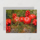 Una cesta repleta de fruta roja y brillante enclavada en ramas verdes te da un saludo de vacaciones en una postal colorida.