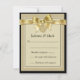 RSVP - Perlas y cintas de oro con encanto sobre un fondo dorado y negro. Personaliza con tu propia información. Si necesita mover el texto o cambiar el color, el tamaño o el tipo de letra, haga clic en Personalizar. Por favor, tenga en cuenta que esto no es un lazo real, perlas o encanto, sino una imagen gráfica. Se incluyen sobres blancos que coinciden con Save The Date (Guardar la fecha) y la invitación (Invitación) disponibles: