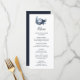 Diseñado para concordar con nuestra colección y accesorios de bodas de mar y pez estrella, este menú de boda de moda náutica presenta un ilustracion de color acuático con formas artesanales en azul marino Perfecto para bodas de playa, verano o náuticos. Este diseño es parte de una colección, por favor visite nuestra tienda para ver los artículos que coincidan. Para obtener ayuda o solicitar ayuda, póngase en contacto con nosotros en citronelladesign@gmail.com