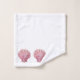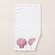Este bonito conjunto de toallas de baño incluye conchas de vieiras rosadas sobre un fondo de blanco sólido.