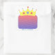 Una pintura de una corona amarilla con piedras azules y rubíes está lista para ponerse encima de la cabeza de la persona de tu cumpleaños, en estos pegatinas personalizados. También hay un lugar para que escriba su propio mensaje.