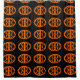 Esta impresionante cortina de ducha tiene un óvalo naranja con seis cuervos. Cada cuervo tiene ojos amarillos con pupilas negras y alas estiradas. Los cuervos están volando unos hacia otros formando una forma oval. El fondo es negro.