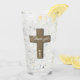 Moderno ilustracion de la Primera Sagrada Comunión con una cruz de madera con imágenes afines a la comunión en un fondo rústico. Cambiar fácilmente las 2 fotos de muestra del comunicante con sus propias imágenes para personalizar el producto.
