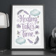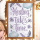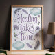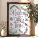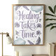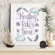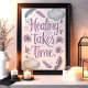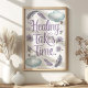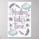 El diseño de esta obra mural "Curando lleva tiempo" permite crear un espacio apacible y solidario, con un suave guion violeta rodeado de delicadas flores, plumas y nubes en tonos pastel, lo que lo convierte en un lugar perfecto para promover la relajación y el autocuidado. Ideal para decoración en casa, oficinas de terapia o como regalo de reflexión, esta obra de arte sirve como un recordatorio de que la curación es un viaje que requiere paciencia y amabilidad.