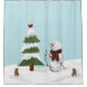 Esta cortina de ducha de Snowman presenta a un lindo muñeco de nieve listo para decorar para el árbol de Navidad mientras los conejos y el cardenal miran. Haz que tu cuarto de baño sea más festivo y adorable con esta cortina de ducha de Snowman.