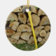 Fotografía de pila de madera y hacha para un adorno diferente para un árbol.