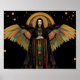 Título de la imagen: Alas de Morrígan. Descripción de la imagen: Avancemos hacia el poderoso aura de Morrígan, la diosa celta de la guerra, el destino y la soberanía. Esta obra de arte, representada en una mezcla de realismo de fantasía y Art Nouveau, retrata al Morrígan con alas de plumas vibrantes y una mirada tan penetrante como el cielo nocturno. Los detalles intrincados y los colores llamativos evocan su papel como guía a través de transiciones, a menudo representadas con cuervos y una conexión con el reino espiritual. Perfecto para los amantes de la mitología celta y el arte místico, esta hermosa pieza es una adición inspiradora a cualquier espacio sagrado o altar personal. Colores, arcoiris, oro/latón, negro