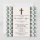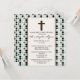 Comience su evento con nuestra moderna invitación al bautismo / bautizo. El Invitación presenta un fondo moderno de puntos marrones y azules con una cruz marrón. Fácil de personalizar, sólo tienes que añadir la información del evento y estás listo para ir.