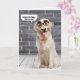 Un usuario de oro con una divertida máscara de bigote en la pared de ladrillo gris y el suelo de madera con burbuja de habla para el cumpleaños de su yerno. Se puede cambiar por el cumpleaños de cualquiera. El texto es editable.