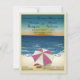 Características del este diseño una escena inspirada retra de la playa completa con flips-flopes y parasol de playa que hace este parecer una postal del vintage. Tenemos un montón de texto adaptable para que usted añada su información del fiesta. ¡Mostrado aquí como invitación de la ducha del boda, este diseño versátil se puede modificar para requisitos particulares para las duchas de los pares, los aniversarios, los bodas de playa o aún las fiestas de cumpleaños - las posibilidades son sin fin! El dorso de esta invitación tiene el mismo gráfico. Si usted necesita este diseño en otros productos satisface utiliza la característica del mensaje del envío atada a esta tienda y nos placeremos crear ese producto para usted.