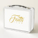 Diseño de texto de juegos de palabras visuales con la primera línea en un tipo de letra fuerte y hermoso impreso en negrita sobre la segunda línea de letras pequeñas de espacio amplio. Mantén el inspirador dicho 'Fe sobre miedo' para un mensaje de aliento, o usa la plantilla de texto para crear una nueva cita inspiradora. Editar para cambiar el texto dorado y el fondo blanco a los colores que desee. ♡ Idyllfire