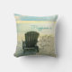 Características del este del océano de la playa diseño de la almohada una fotografía de una silla de Adirondack en la playa, mirando hacia fuera al mar. Disponible en la talla 16 x 16 y 20 x 20.