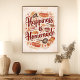 Trae calor y alegría a tu cocina con este encantador poster "La felicidad es casera". Con un diseño acuático de productos horneados y utensilios de cocina que rodean la frase más sentida, esta impresión es un delicioso recordatorio de los placeres sencillos de la cocina casera. Ideal para añadir un toque rústico a la decoración.