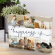 Collage de fotos con 6 de tus fotos favoritas y tu texto personalizado. "la felicidad es" está escrita a mano en una caligrafía azul oscuro linda y elegante y la plantilla está configurada para que usted termine la cita. El texto de la muestra dice que la felicidad es tenerte como nuestro abuelo que puedes acomodar como personalizar. Las imágenes se muestran en formato 4x horizontal y 2x cuadrado / instagram. Perfecto para el día del padre, navidades o cuando quieras un encantador regalo fotográfico para tu abuelo. Este diseño también está disponible en caligrafía en negro, gris oscuro o dorado.