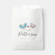 La fiesta de bodas blancas favorece las bolsas con mariposas. Diseño romántico para novios, recién casados, parejas casadas o marido y mujer. Añade tu propio apellido y fecha de matrimonio. Bolsas de papel elegantes para comida, golosinas, regalos y más. También es ideal para la ducha de novia o el compromiso. plantilla de tipografía de guión elegante con ilustracion encantador. Envase a granel.
